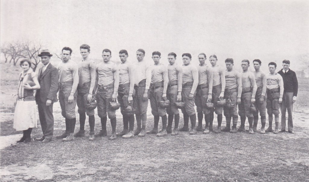 The 1923 Moonshiners went 2-4 for the season. They pulled out wins against Cowpens and Parker High that year. The 1924 team, coached by H.D. Bruce, gave the Moonshiners their first winning season with a record of 5-2 by defeating Parker, Cowpens, Central, Belton, and Holly Springs. 1924 would be the first season that block letters would be given to the football players. The 1925 season was split evenly 4-4 with wins against Holly Springs, Westminster, Greer, and Chesnee. The 1926 season saw a new coach, W.D. Mitchell, and only 4 players returning to the Moonshiners, but the team still managed to have a successful run of 5-2 with wins against Chesnee, Edisto, Travelers Rest, Cowpens, and Cedar Springs. Not much is known about the 1927, 1928, or 1929 teams and we do not have a picture of them. The 1927 Moonshiners received losses against Honea Path, Gaffney, and Greenville. If they won any games that season, it wasn’t recorded. The 1928 Moonshiners lost to Gaffney, Fountain Inn, Simpsonville, and Abbeville. The only win recorded was against Fruitland. 1929 was the last year of North Greenville Baptist Academy football. The only record we have of that team is that they lost to Fruitland, but defeated Brevard.