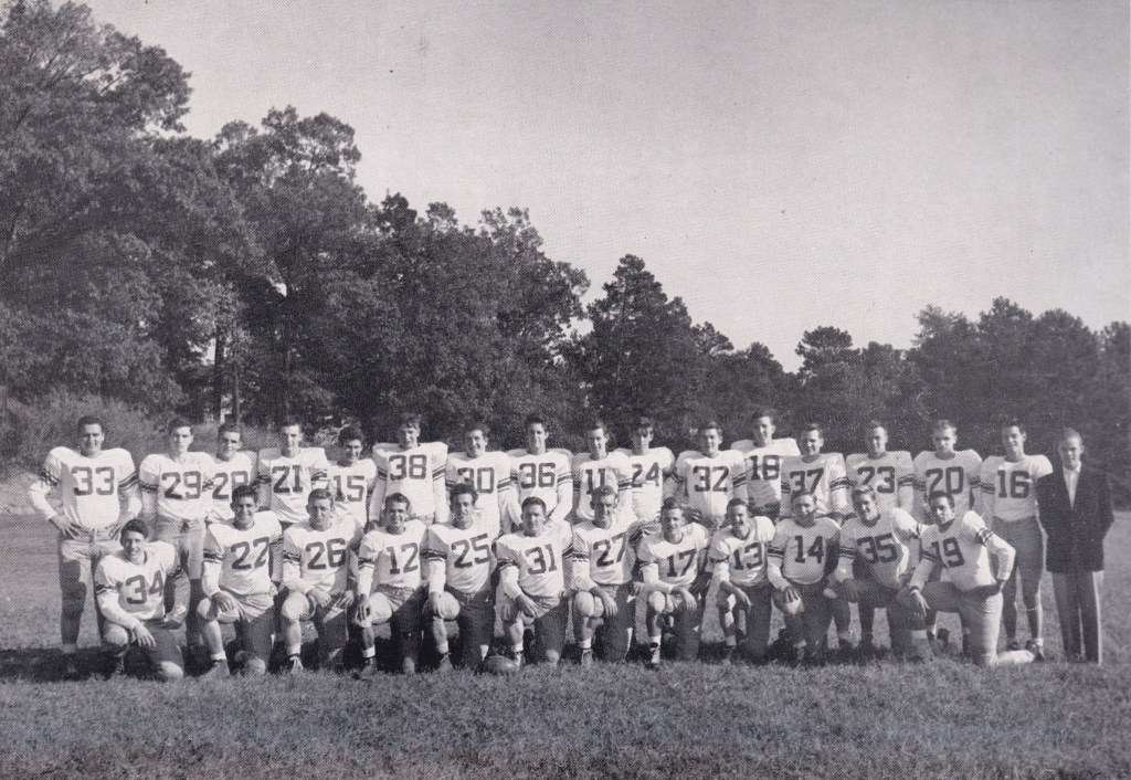 In, 1951, North Greenville joined the newly formed Western Carolinas Junior Athletic Conference, and Charlie Thomas, a former football star at Furman University, became the new coach. Football soared in popularity at North Greenville during this season and the team developed the motto of “Liberty’s in every blow! Let us do or die.” The 1951 Black Widows played a full season of 8 conference games and finished the season 4-4. Outlook was great for the 1952 season with a returning coach and a squad of 30 guys. Unfortunately, the season did not go as hoped. The only win in 1952 was the homecoming game against West Georgia. That was also the only home game played on campus. All previous home games had been played at the Greer High School stadium.