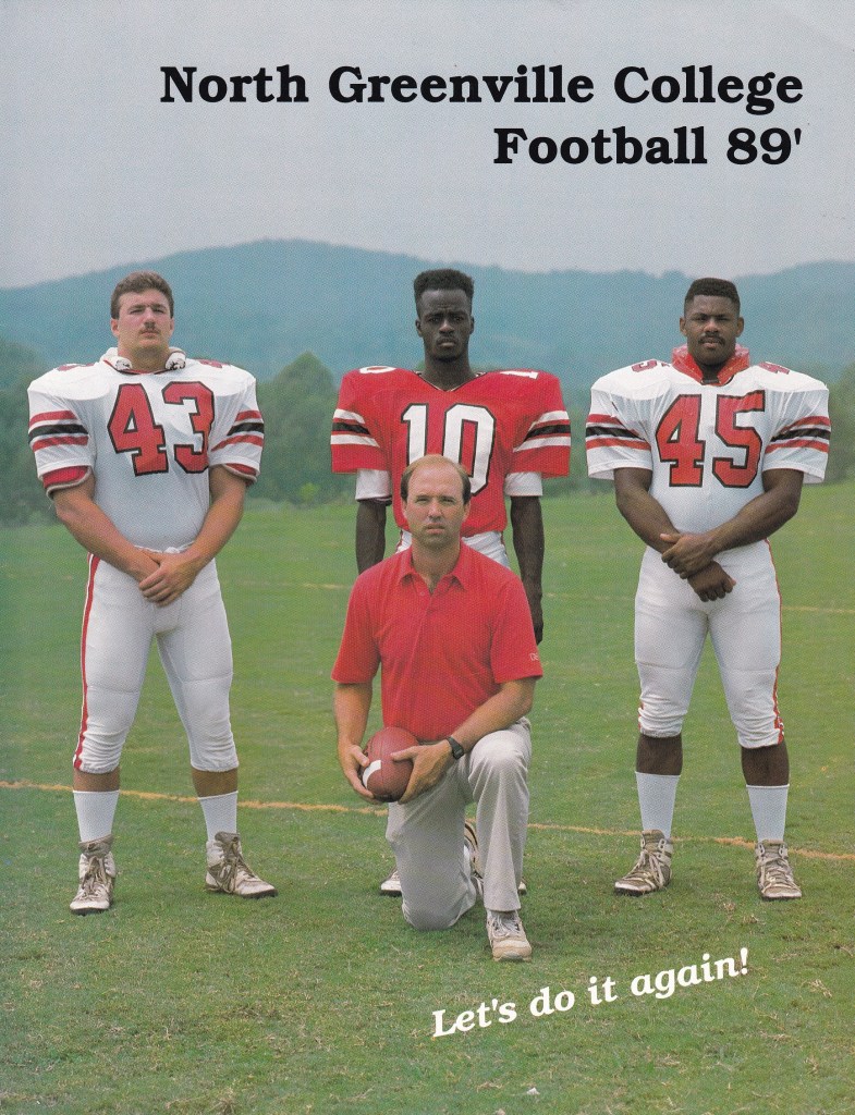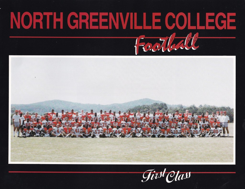 Saturday, September 10, 1988, The Mounties football team took the field for the first time in Fork Union, Virginia against Fork Union Military Academy at 1:30p.m. Not many people expected much from the inexperienced new team. However, The Mounties pulled off the 20-3 win. Their next test came at their “home’ opener at Greer High School stadium against Marion Military Institute. The Mounties pulled off another victory, defeating Marion 34-7. The 1988 team would go on to win all but one game that first season. Their only loss was against the 7th-ranked Lees-McRae College. Included in this first team was Clayton Holmes, the first North Greenville football player to play in the NFL. The 1989 team finished out the 80s strong for North Greenville. After an upset victory over 9th-ranked Lees-McRae, the team finished out the season undefeated and ranked 10th. Regardless of their ranking and their record, the new team wasn’t taken seriously enough to be included in a bowl game. Coach Taylor told reporters, “It’s political and I’m a football coach, not a politician.”
