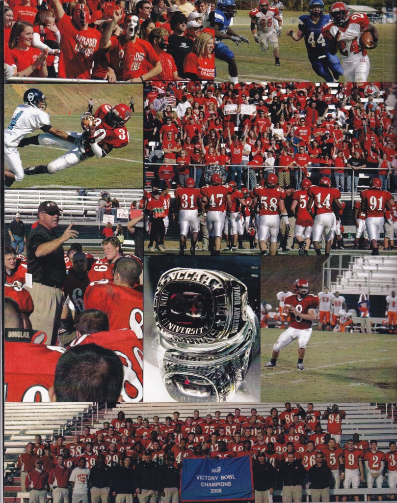 The first year of Crusader football finished much like the last year of Mounties football with a record of 0-10 for the 2001 season. The Crusaders also entered the NCCAA and the NCAA Div. II as an independent team. 2002 brought a new coach, Brian Smith, to NGC. The 2002 team beat the losing streak and finished the season with a record of 4-6. The 2003 Crusaders finished the season with a winning record of 6-5, but lost to Geneva in the Victory Bowl. In 2004, Coach Mike Taylor returned to North Greenville and The Crusaders finished 2004 with a record of 3-7. 2005 was an exciting year for North Greenville because, for the first time, the football team was able to play a home game on campus in the new Younts Stadium. Previously, home games were played at Greer High School or Eastside High School. The 2005 season ended with a record of 3-8. The Crusaders turned things around for the 2006 season with a winning record of 10-2 in the team’s first year as a university. The Crusaders also hosted Malone at Younts Stadium in the 2006 Victory Bowl and came out the victors with a score of 56-28. The 2007 season ended with a record of 5-6 and 2008 ended with a record of 2-9. In 2009, NGU hired Jamey Chadwell as head coach and his first season ended with a record of 2-8.