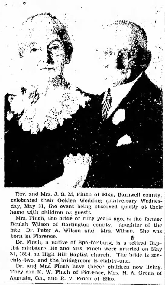 John S.M. Finch passed away in 1955 at the age of 92. He is buried next to his bride of over 50 years at the church where they married, High Hill Baptist Church.
