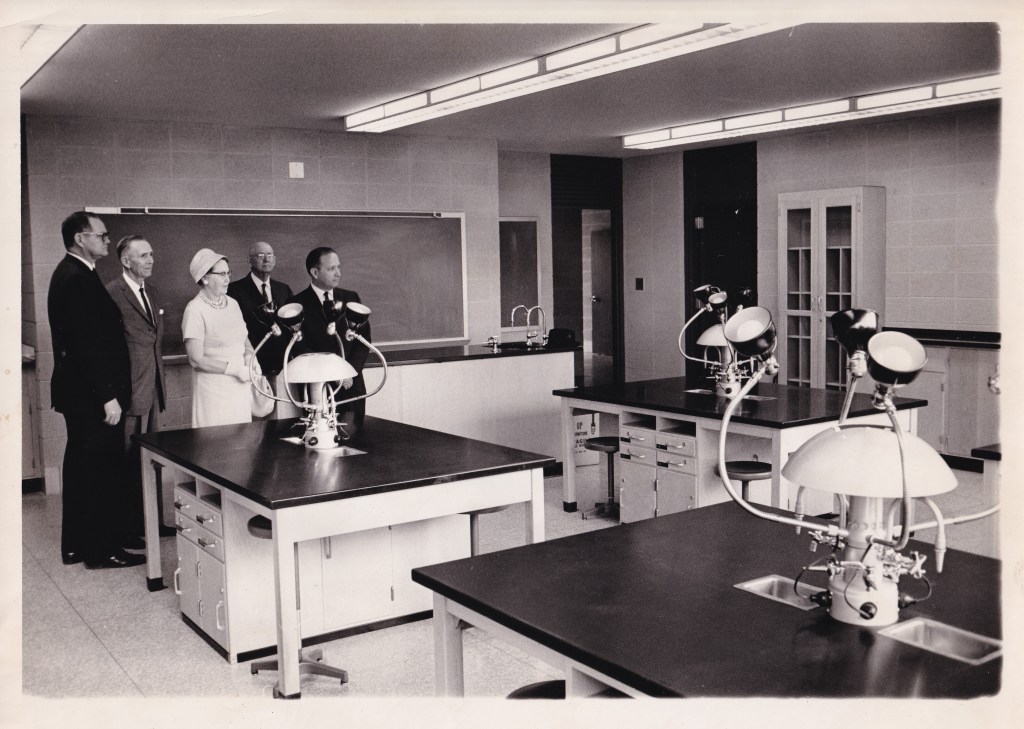 The location chosen for the new science building meant that Taylor Hall, the old boy’s dorm, would need to be torn down. Once Taylor Hall was removed, construction began on the science building. A groundbreaking ceremony was held on May 6, 1961. The building was constructed on a slope so that both floors could be accessed from ground level and a greenhouse was included for the biology department. A brick lattice wall was added to the front and back of the building to cut down on direct sun rays without blocking the view from the inside. The first floor contained the Home Economics Department with a kitchen, a sewing room that doubled as a banquet hall for 100 people, and a storage room for textbooks. The second floor housed the math and science departments, labs, classrooms, an auditorium-style lecture hall with seating for 104 people, and faculty offices. Once equipment and furniture were added, the final price tag was $310,000. The architecture firm that designed the building ended up winning second place for their design in a contest by The South Carolina Chapter of the American Institute of Architects.