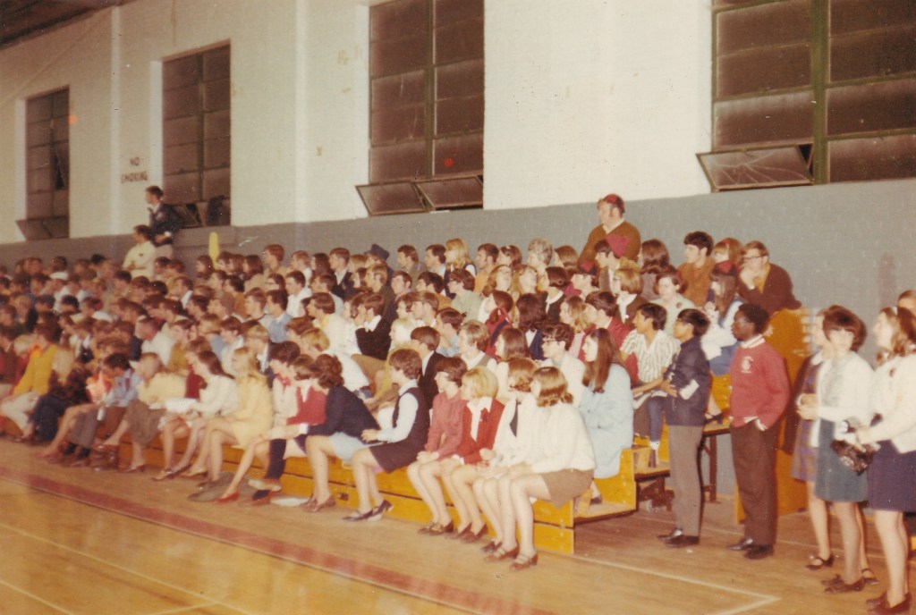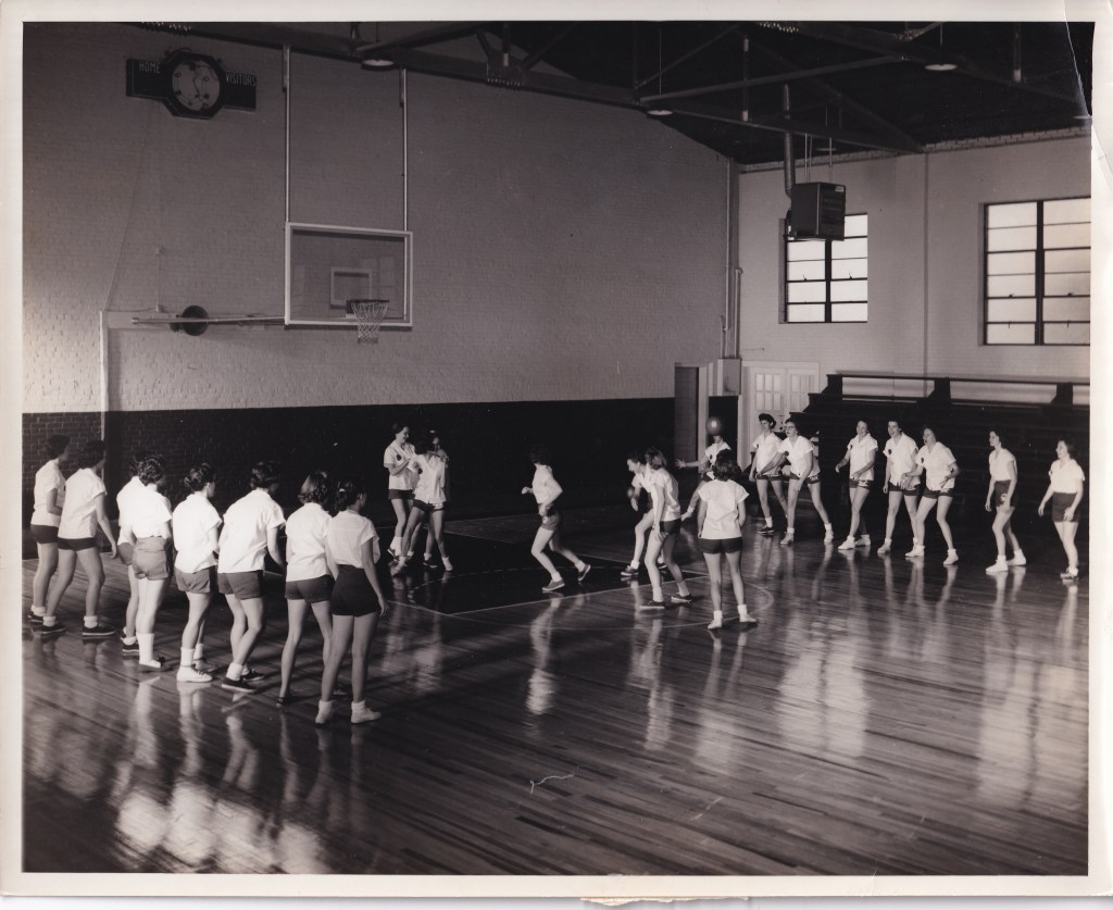 The next improvements to the gym came in 1959 when a PA system was installed. For the first time, someone could make announcements throughout the games using a loudspeaker. In addition to the PA system, a new whirlpool was added to one of the dressing rooms. Coach Dean, along with students Hamlin Gaines and Bill McManus (known as Dr. McManus to many alumni today), took a secondhand bathtub, added three hot and cold water spigots, and installed a motor to stir the water. According to Coach Dean, “Such a whirlpool massages the muscles and helps keep the players physically fit.”