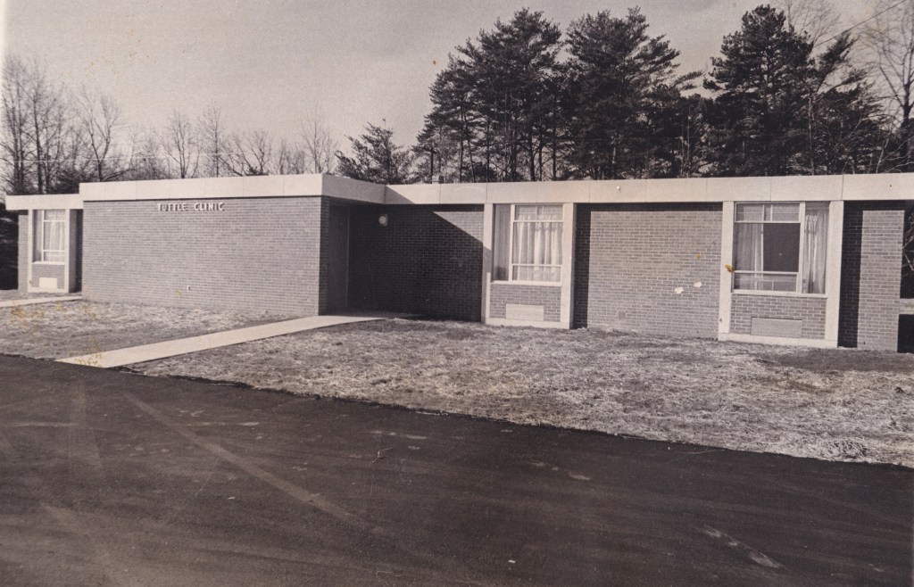 The clinic was a t-shaped building with three two-bed patient rooms, a lobby area, a nurse’s office, a doctor’s office, an isolation room, two small exam rooms, and storage space. At the back of the building, there was a nurse’s apartment with two bedrooms, a living room, a kitchen, and a large dining room. The outside of the clinic was brick with an interior of terrazzo floors and plaster walls. The building cost was estimated to be $88,500 and the completion date was set for October 1966.