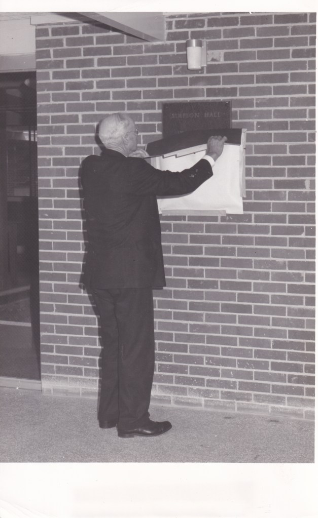 Several things happened with the new women’s dorm in 1963. First, the building was officially given the name “Simpson Hall” in January. The name was in honor of Leonard K. Simpson who was the eighth principal of North Greenville and served from 1912-1919. You can read more about Dr. Simpson in yesterday’s post. At the plaque dedication on May 18th, Leonard Simpson’s brother, C.H. Simpson, performed the unveiling. Next, men from the Charleston Naval Base came to campus to install official yellow and black fallout shelter signs bearing the civil defense seal. Lastly, a connecting unit was built onto the dorm. On the other side of the connecting unit was another new dorm that would later be named Howard Hall.