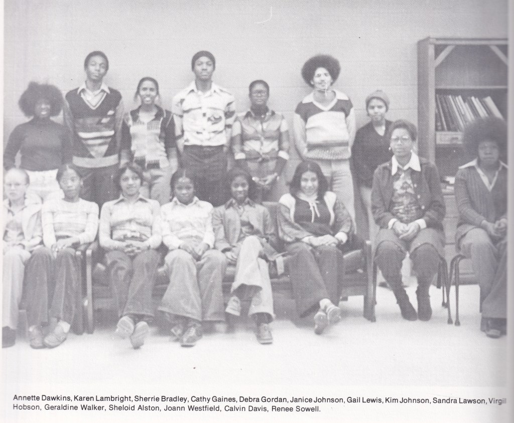 The first Afro-American Society group included around fifteen members. They were led by president Gail Lewis and vice president Calvin Davis. According to the 1978 yearbook, “The Afro-American Society provides the club members an opportunity to join together in fellowship and goodwill. The club sponsors their own choir and is known for its great cake raffle.” By 1979, the group had nearly doubled in size and played an active role on campus including sponsoring a homecoming court representative each year.