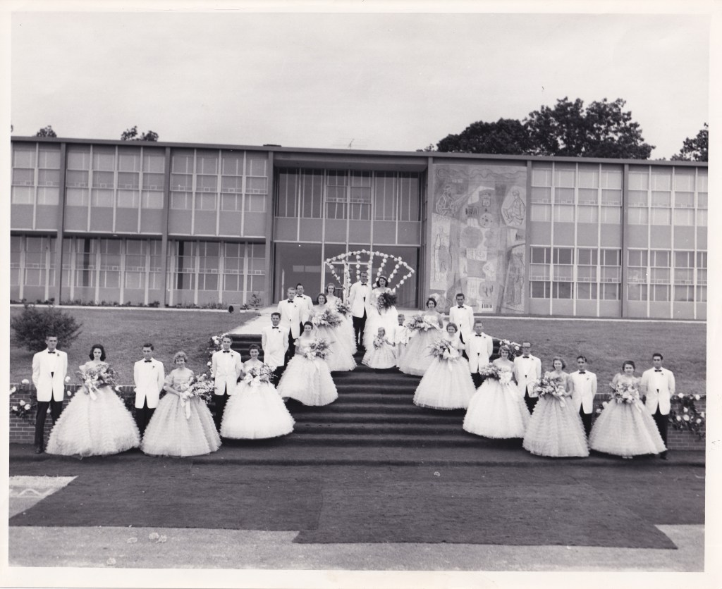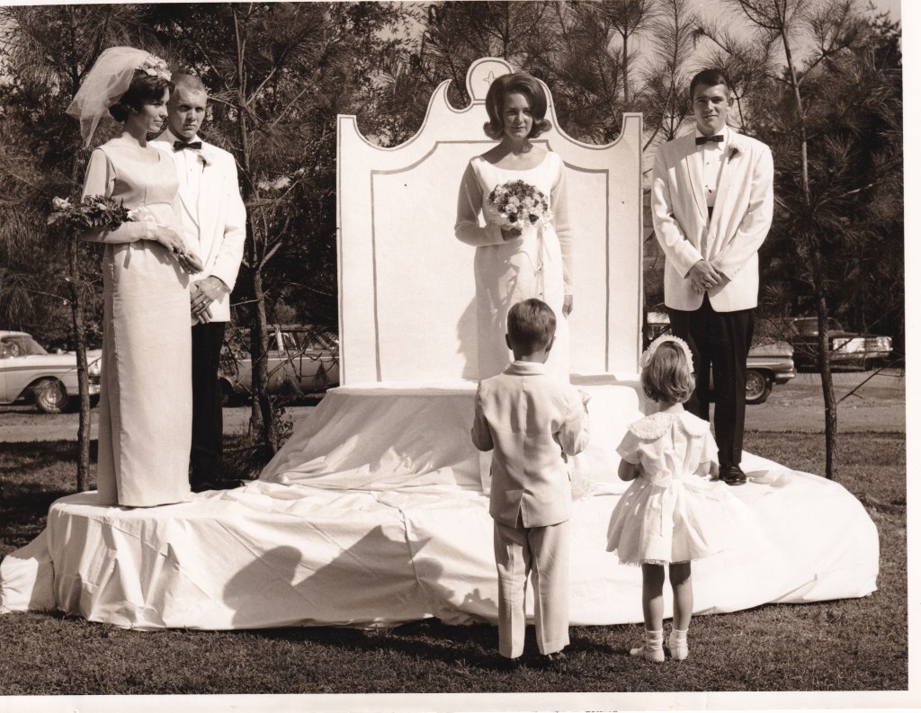 A lot of planning went into the May Day programs at North Greenville. Each year, there was a committee formed to plan the event. Originally, May Day was sponsored by the sophomore class, but over time the whole student body became involved. With very few exceptions, the celebration was held outside in the central part of campus. In addition to dancing around the maypole, there was usually some sort of themed entertainment for the Queen. Themes through the years include the United Nations and Snow White and the Seven Dwarfs. The May Day Court attendants all wore special dresses and their escorts wore suits. Some years, two campus children, one boy and one girl, were chosen as the mascots for May Day. Having an outdoor event sometimes led to unexpected interruptions. One May Day, in the late 1950s, a dog decided to join the fun and began running around making the participants and guests laugh throughout.