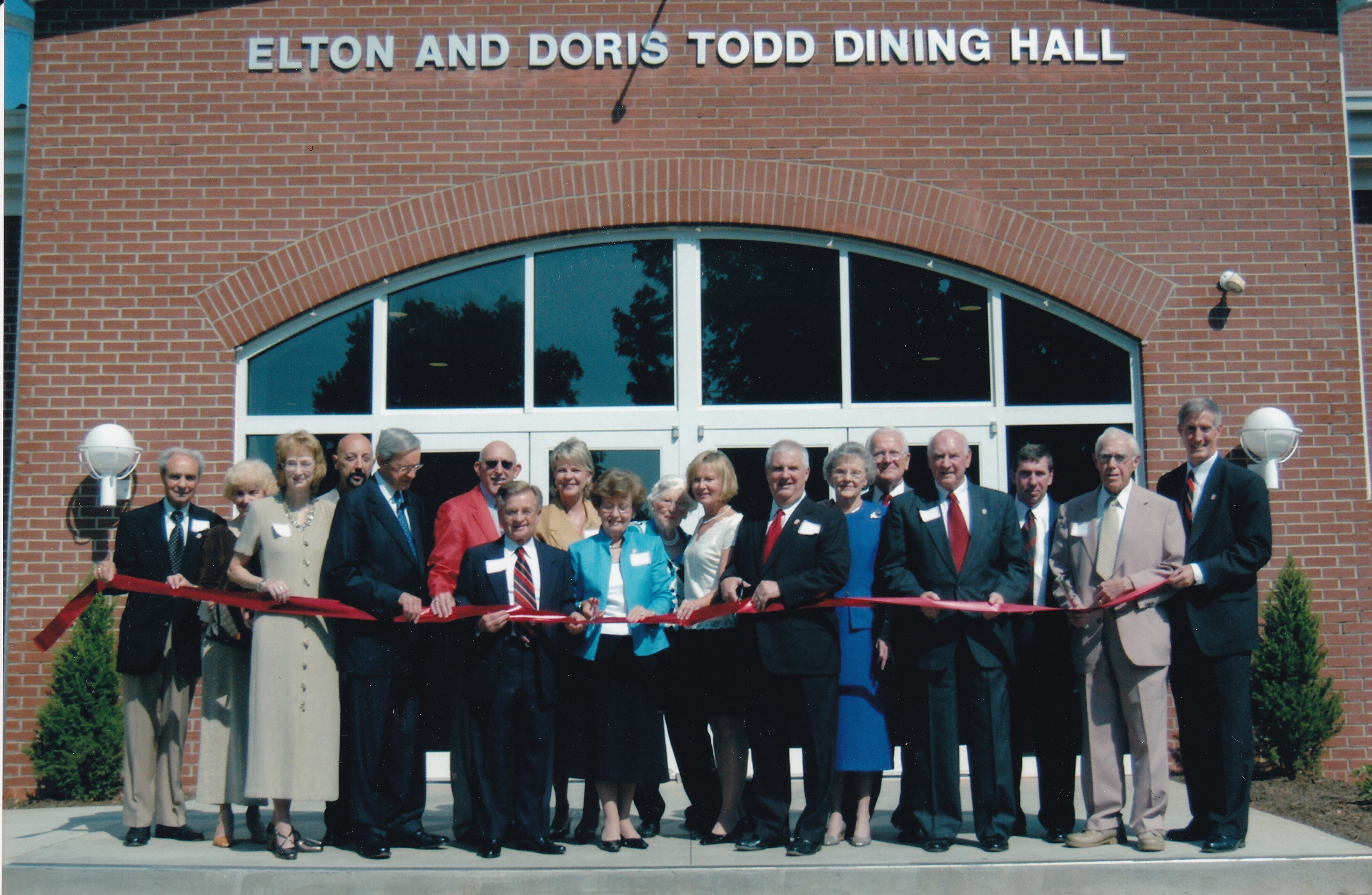 The new dining hall was built to accommodate 1,200 students and was named the Elton and Doris Todd Dining Hall after the Todd family. Elton Todd was the founder of Southern Management Corp., a chain of consumer finance companies. Mr. Todd was also a member of the North Greenville College Council of Advisors and served on the North Greenville Board of Trustees. Mrs. Todd was a member of North Greenville’s Women’s Auxiliary Board, and the couple started the Elton and Doris Todd Scholarship Fund in 2001 to provide scholarships for students entering a church-related ministry.