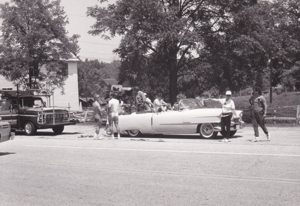 Production began at 7:30 a.m. and continued until dusk from Monday through Friday for one week, working on what will be about 15 minutes of the film script after editing. Special-effect crews, production assistants, tractor trailer rigs, a helicopter, recreational vehicles, antique automobiles, set props, cameras and studio equipment filled the streets.