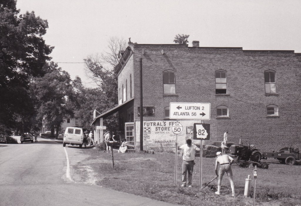 The old McCracken’s store, closed since the mid ’40s, was stocked with hardware items with brand names from the early ’60s to transform it into Futral’s Hardware Store in the movie. Kerosene lamps, automobile belts, tin washtubs, bales of hay, hoes, shovels and other items were added for effect.
